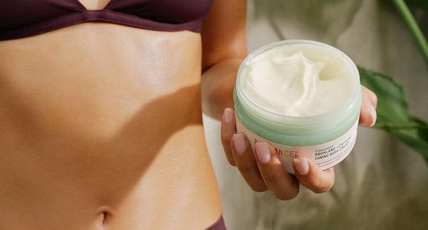 Biossance • 04/19/2022 The Best in Clean—Now for Every Body Owned complete copy for new body care category with Caffeine Toning Body Cream launch.